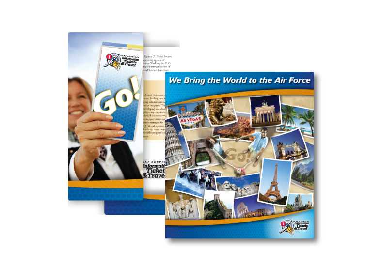 The Air Force Services Agency needed an identity and a strategy. After exploring the intrinsic value that ITT brought to the lives of military families, and tearing apart the thesaurus for words, phrasing and messaging that would convey this concept accurately, esd landed on the phrase, “Just go!”