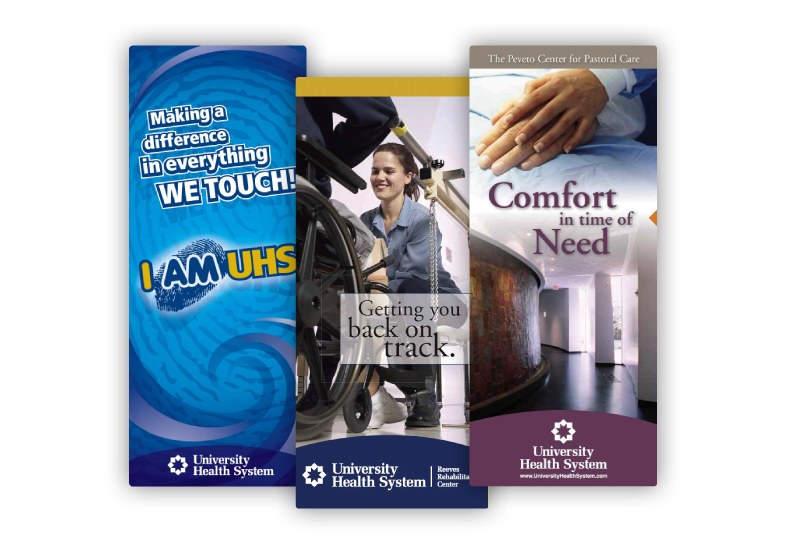 We spent several months working with the corporate communications team reviewing, researching, and developing a new identity, messaging (both internal and external communications), and corporate positioning to differentiate UHS from the competition. After intense competitive market research, analysis and public opinion gathering, we collaborated with the UHS team to develop a new brand strategy. After developing new visual brand standards, all UHS facilities, programs, signage, and collateral now feature the new identity and a new attitude of vital service to public health.